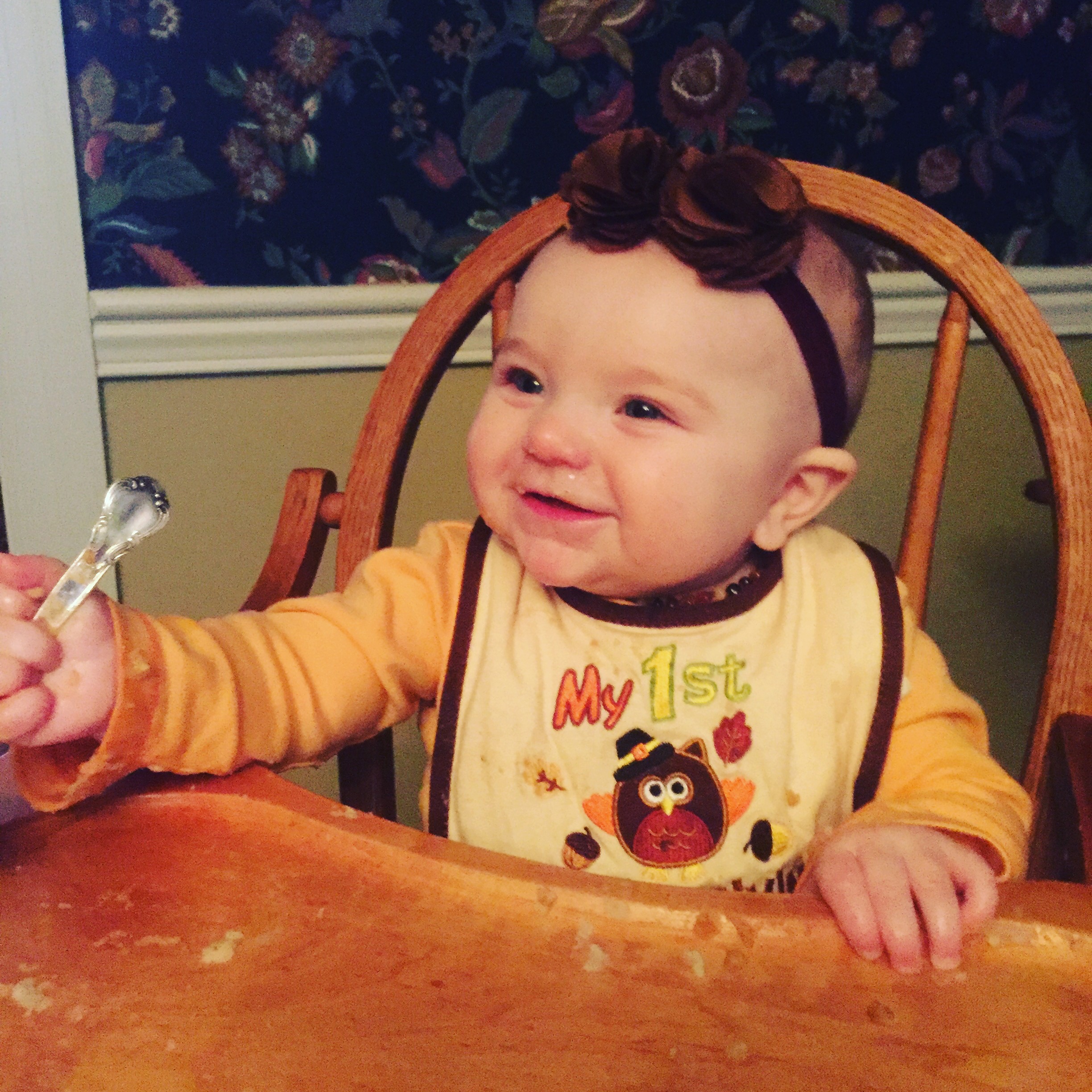You had your first Thanksgiving, baby! Although most of the food ended up on you instead of in your mouth. Seriously, you had stuffing in your sleeves and potatoes in your socks! We gave you a bath and had an outfit change after the meal.