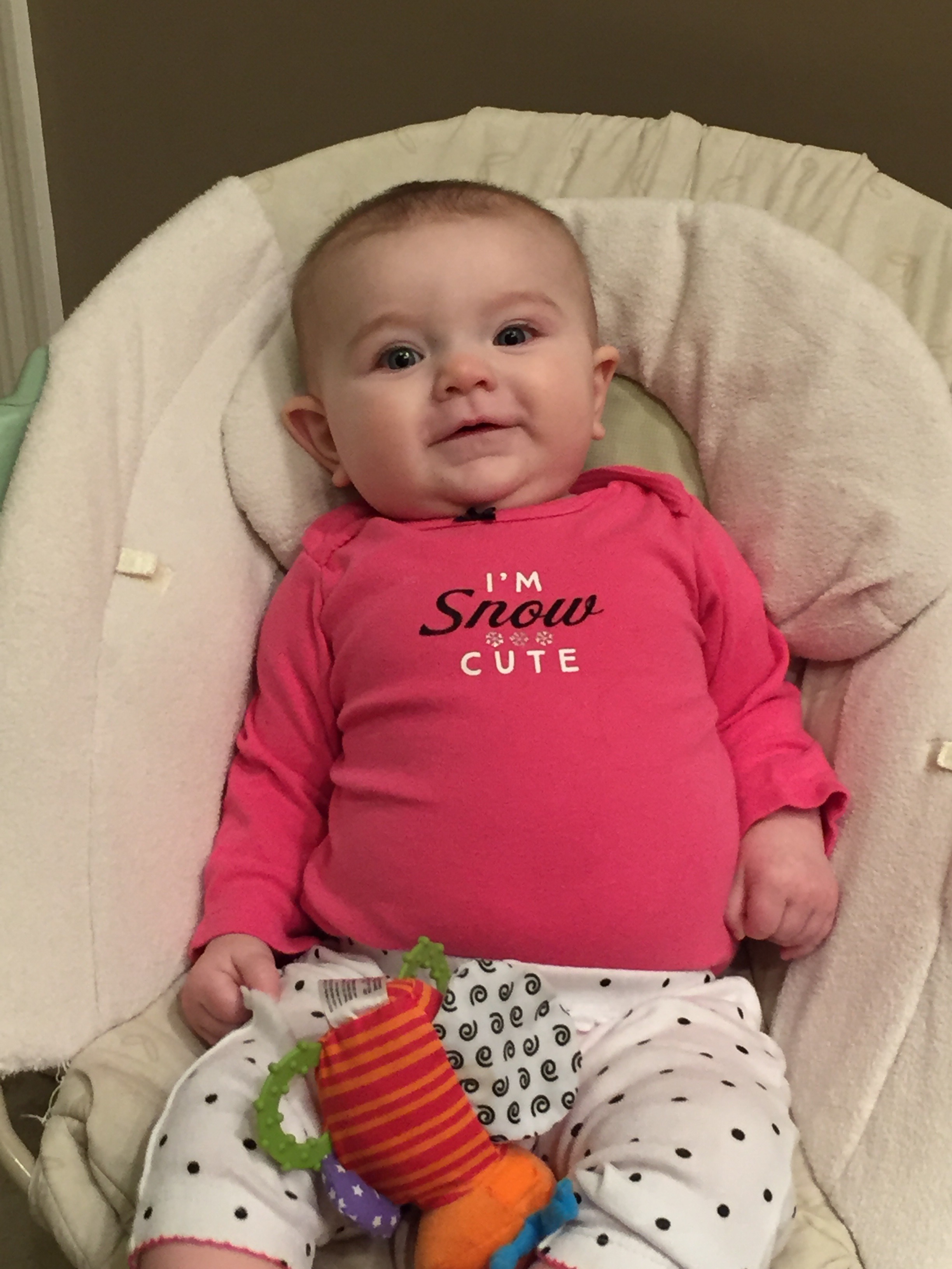Oh Lydia Lou, you are so darn cute but would be much cuter if you were sleeping through the night again. At seven months old, you started waking up 2-3-4 times a night. At your most recent appointment, over the weekend, you were weighing in at 19 pds and 5 ounces. You’ve been mostly healthy so far except for one round of pink eye and an upper respiratory infection (last week).