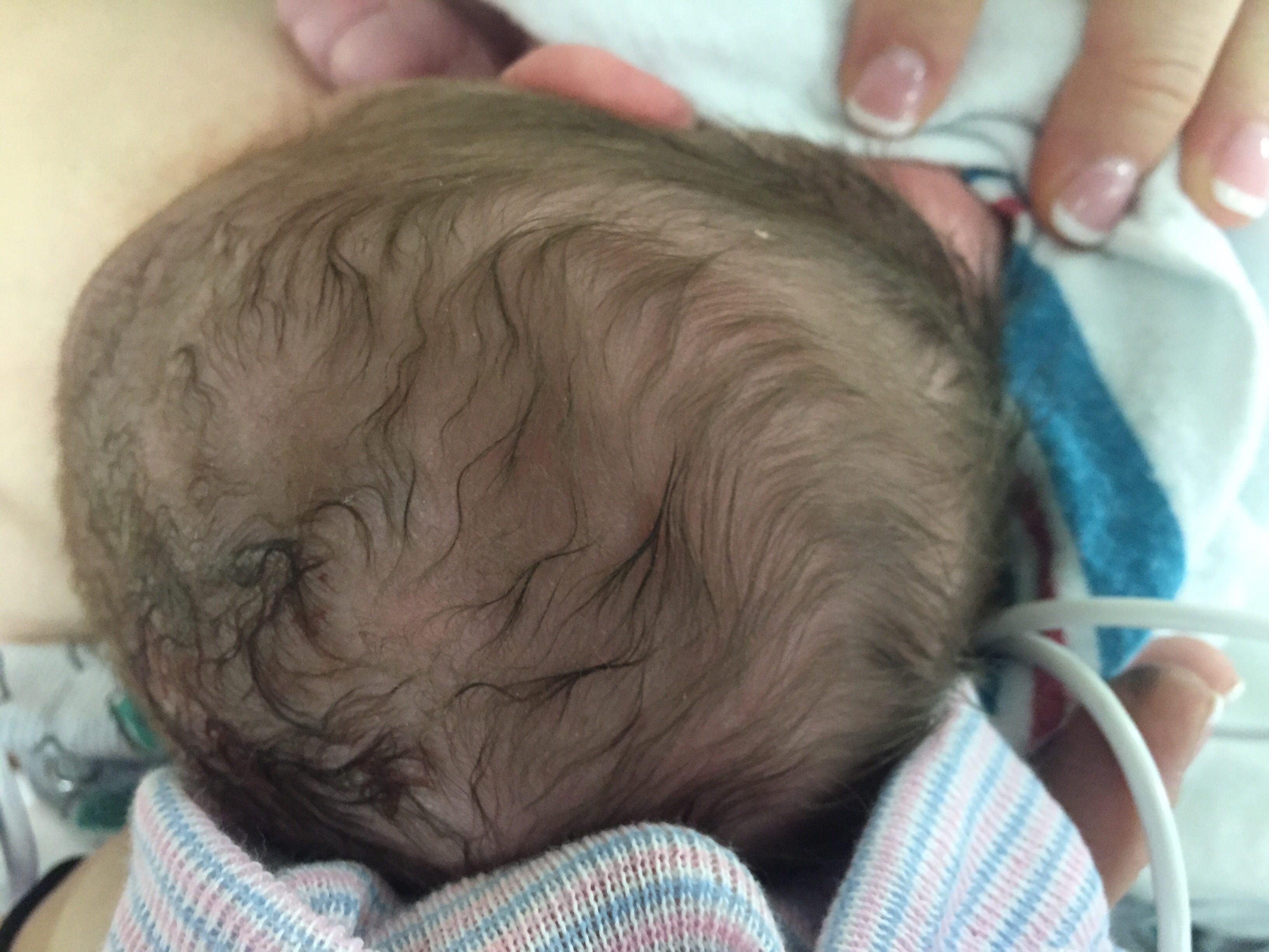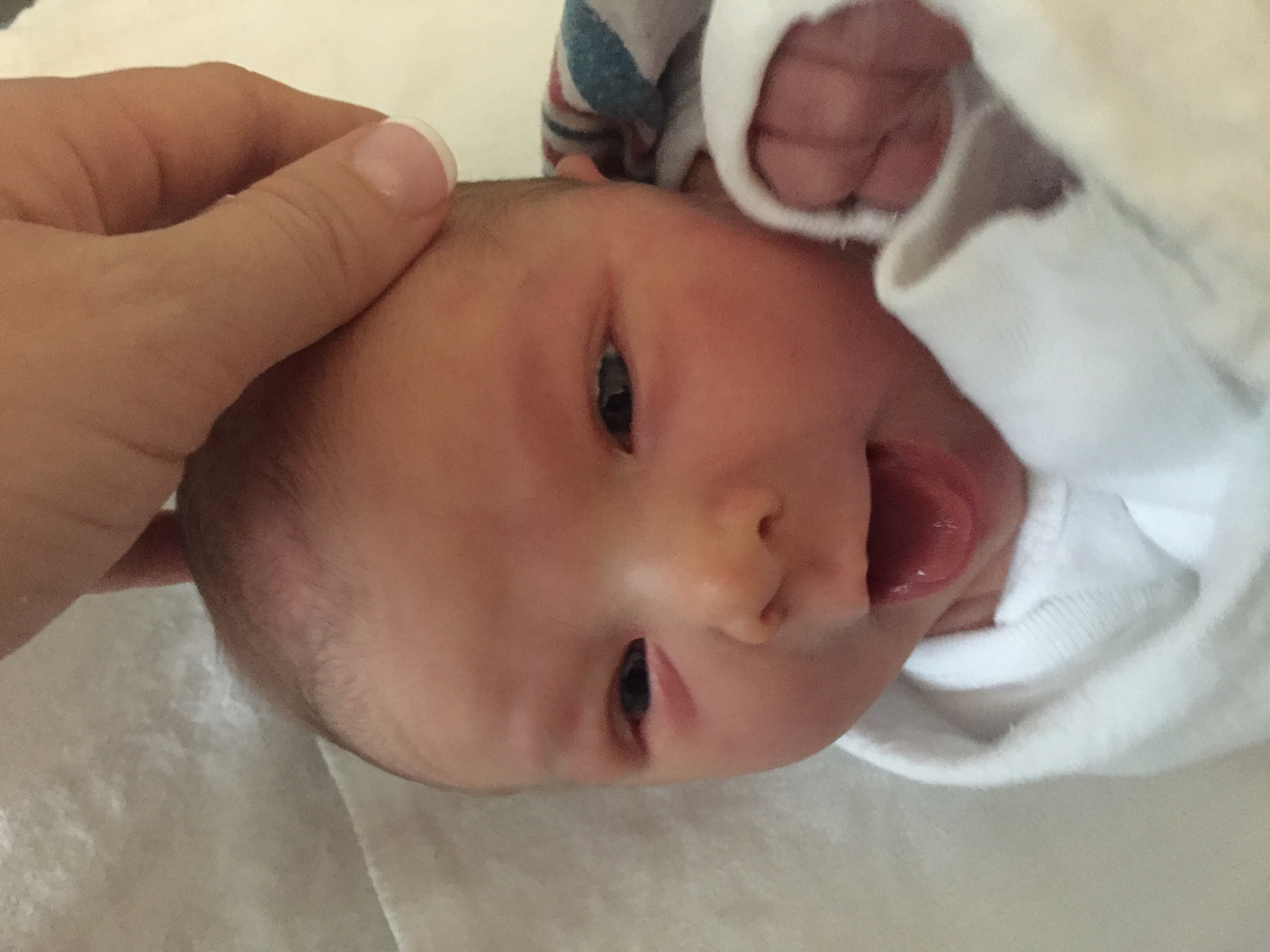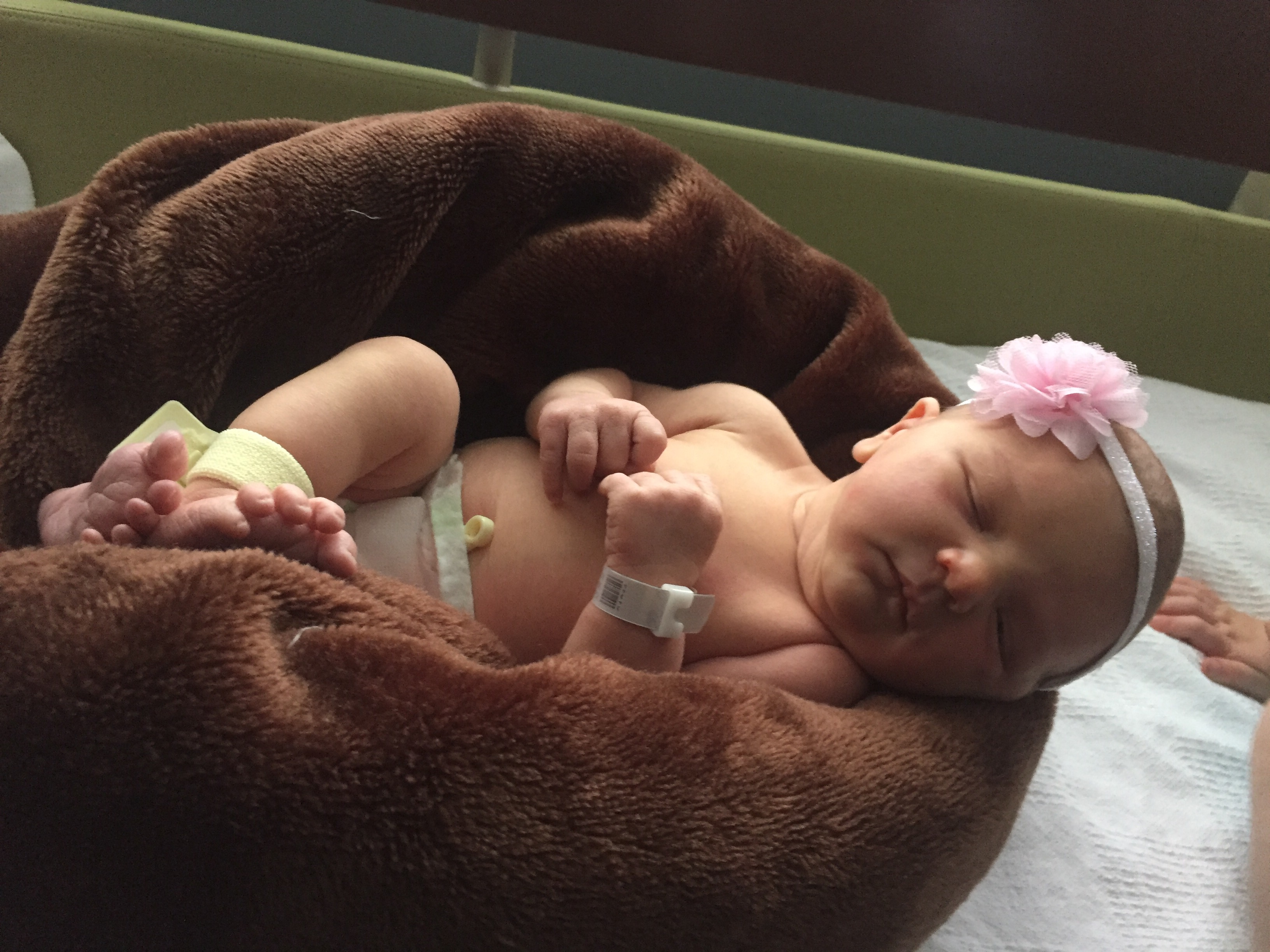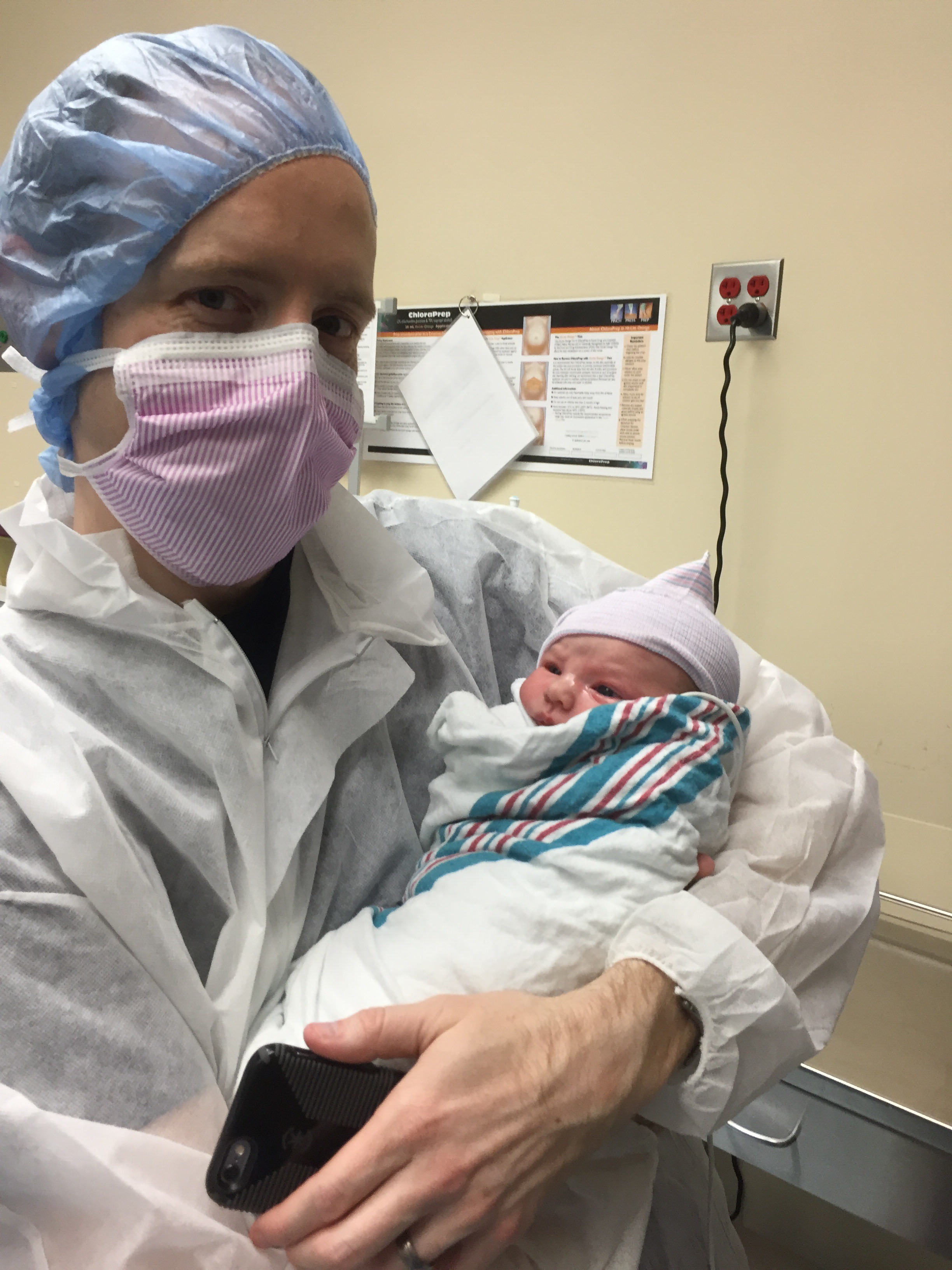 You spent some time, maybe 15 mins with the pediatric nurse while mommy waited for the OB to close. Mommy asked and was able to get the staff to do skin to skin in the OR and you laid on mommys chest for a brief period. They noticed you had some fluid in your lungs and after some time, decided that you would need to go to the nursery (with daddy at your side) for further testing. By the time mommy reached recovery, daddy was back downstairs with you within 15 mins. You were breathing better and ready to nurse. Like your brother, you initially took and fed like a champ.