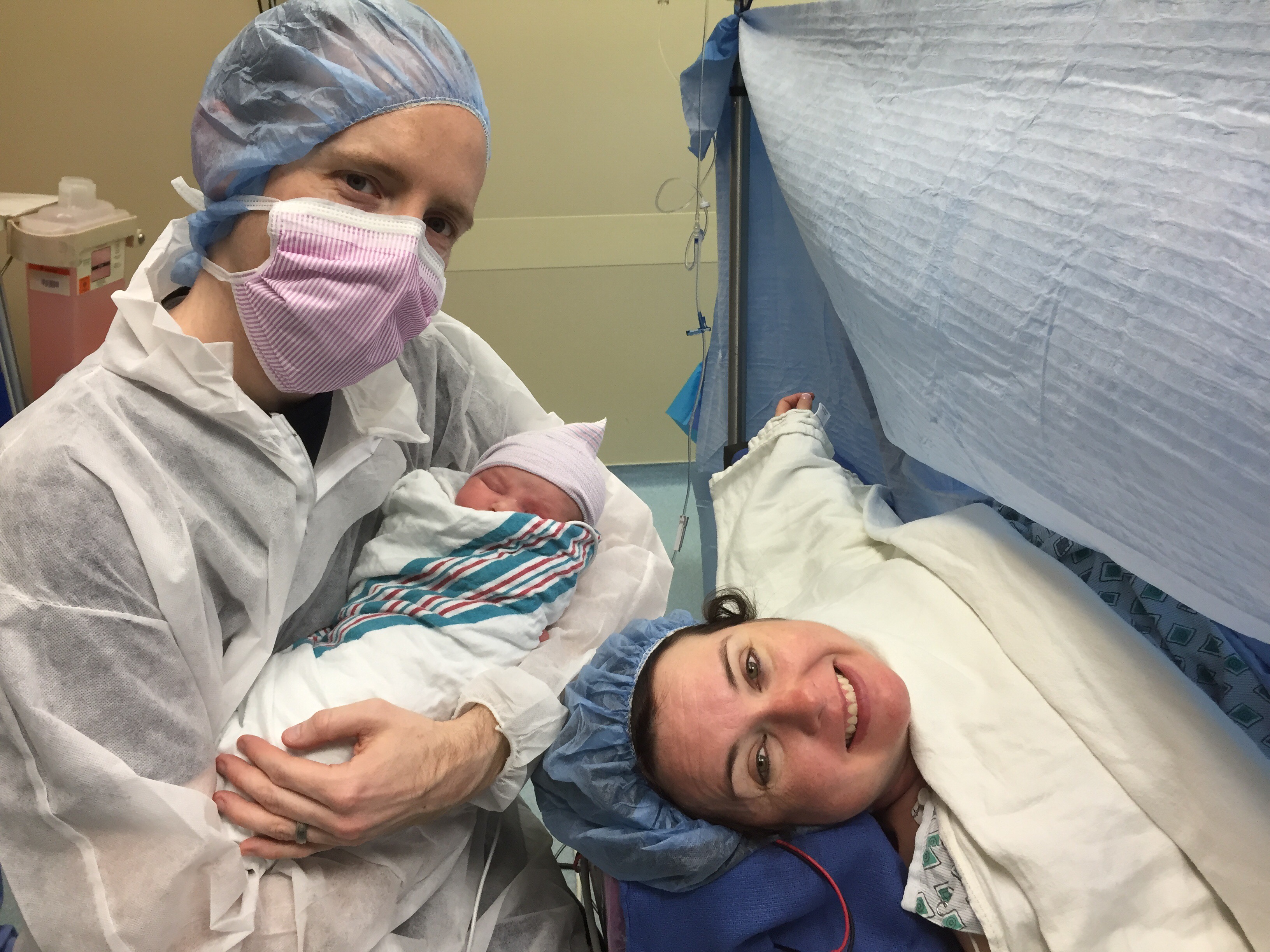 You’re here beautiful girl and we couldn’t be happier! Mommy started showing early signs (Link said the last two visits that you were well engaged, ready to come out and head down) that you probably wanted to come out before your tentative planned birthday on 5/5. Mommy went into labor on 4/30 and we had contractions all night but nothing consistent until “wake up time” on 5/1. We called grandma around 7 to ask her to come that day instead of 5/2. She thought mom was feeling anxious or having false labor but agreed to come. By the time we returned from breakfast and running errands, you were continuing to show mom signs that it was time to vacate. Dad put your big brother down for a nap, called Jim and Madaleine who came to attend to E. When we arrived, mommy was 2cm with contractions 3-4 mins apart. One hour later in the OR, about 6cm with contractions 1-2 mins apart.